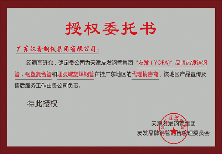“友發(fā)”牌商標于2008年3月被國家工商總局商標局認定為“中國馳名商標”,“友發(fā)”牌直縫焊管、熱鍍鋅鋼管、螺旋焊管,連續(xù)多年被天津市政府授予“天津市名牌產(chǎn)品”稱號。天津友發(fā)鋼管集團連續(xù)10年躋身中國企業(yè)500強、中國制造業(yè)500強之列,2015年,天津友發(fā)鋼管集團位列中國企業(yè)500強第400名,中國制造業(yè)500強第203名,中國民營企業(yè)500強130名.