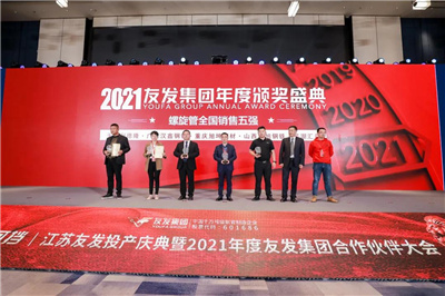 作為友發(fā)集團堅定的合作伙伴,漢鑫三十余年來深耕管材領(lǐng)域,成為華南地區(qū)深具影響力的管道供應商。憑借積淀的深厚實力與優(yōu)秀的管理、營銷團隊,漢鑫在友發(fā)品牌銷售中勇創(chuàng)佳績,獲得了友發(fā)牌鍍鋅管全國銷售二十強、友發(fā)牌鍍鋅管華南地區(qū)銷售三強、鍍鋅方矩管全國銷售十強、涂塑管全國銷售六強、襯塑管全國銷售十強、螺旋管全國銷售五強等六項大獎。這些沉甸甸的獎杯是漢鑫實力與榮譽的象征,也鼓舞著漢鑫團隊敢于爭先、不畏挑戰(zhàn),期待未來再創(chuàng)佳績!