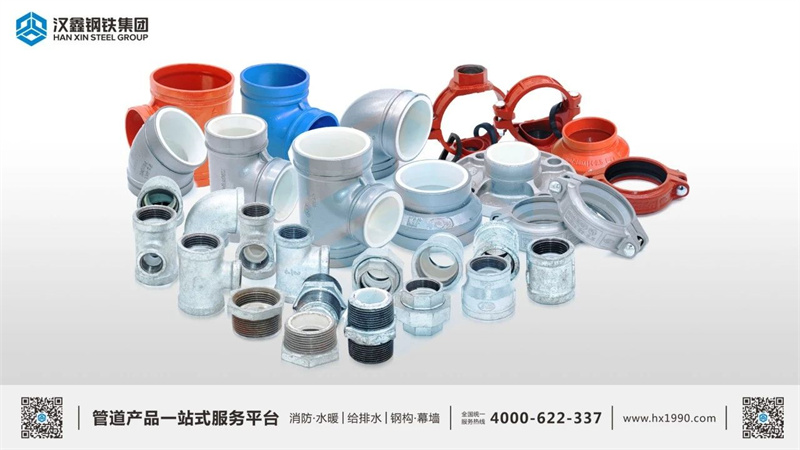 管道配件主要用于管道之間固定、分支、方向的連接和過(guò)渡作用。漢鑫主營(yíng)配件產(chǎn)品包括溝槽管件、瑪鋼管件。