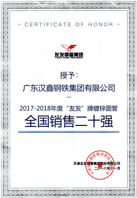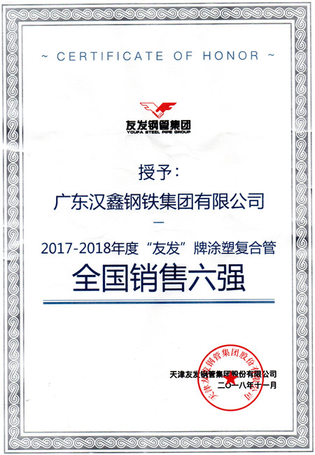 經(jīng)過近三十年的穩(wěn)健發(fā)展,漢鑫鋼鐵集團(tuán)凝聚了一群優(yōu)秀的管理人才和強(qiáng)大的營銷團(tuán)隊(duì),在此次大會(huì)上,漢鑫再創(chuàng)佳績,分別獲得了友發(fā)熱鍍鋅鋼管華南區(qū)銷售三強(qiáng)、涂塑復(fù)合管銷售六強(qiáng)、襯塑復(fù)合管銷售十強(qiáng)、鍍鋅圓管全國銷售二十強(qiáng)等多項(xiàng)銷售大獎(jiǎng)。