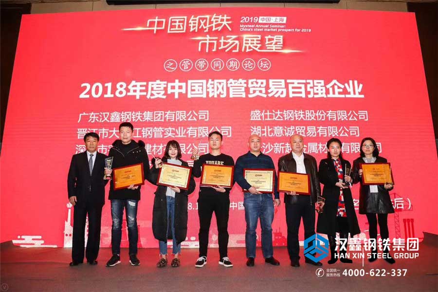 2018年是漢鑫碩果累累、收獲滿滿的一年,我們堅持“守信、求進(jìn)、務(wù)實(shí)、利他”的經(jīng)營理念得到了客戶及業(yè)內(nèi)的極大認(rèn)可;在此次大會上,漢鑫分別獲得了2018年度中國鋼管貿(mào)易百強(qiáng)企業(yè) 華南區(qū)域第一名、2018年中國鋼貿(mào)企業(yè)百強(qiáng)榜 鋼管榜前十強(qiáng) 等多項(xiàng)榮譽(yù)。