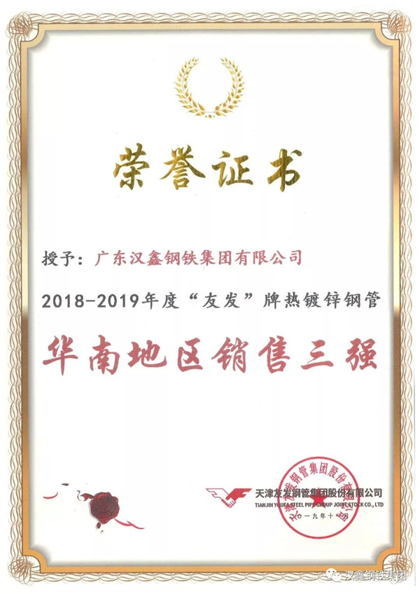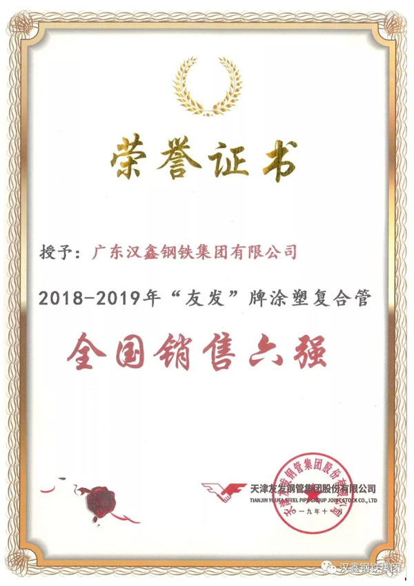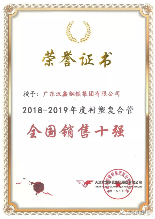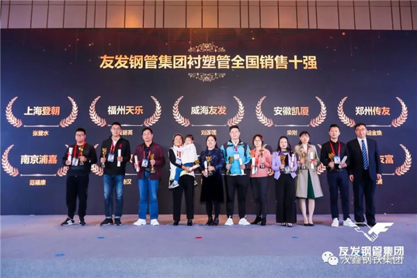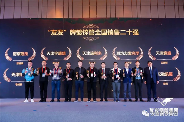 經(jīng)過近三十年的穩(wěn)健發(fā)展,漢鑫凝聚了一群優(yōu)秀的管理人才和強大的營銷團隊,在此次大會上,漢鑫團隊勇創(chuàng)佳績,繼續(xù)收獲友發(fā)熱鍍鋅鋼管全國銷售二十強、熱鍍鋅鋼管華南區(qū)銷售三強、涂塑復(fù)合管全國銷售六強、襯塑復(fù)合管全國銷售十強等多項銷售大獎。
